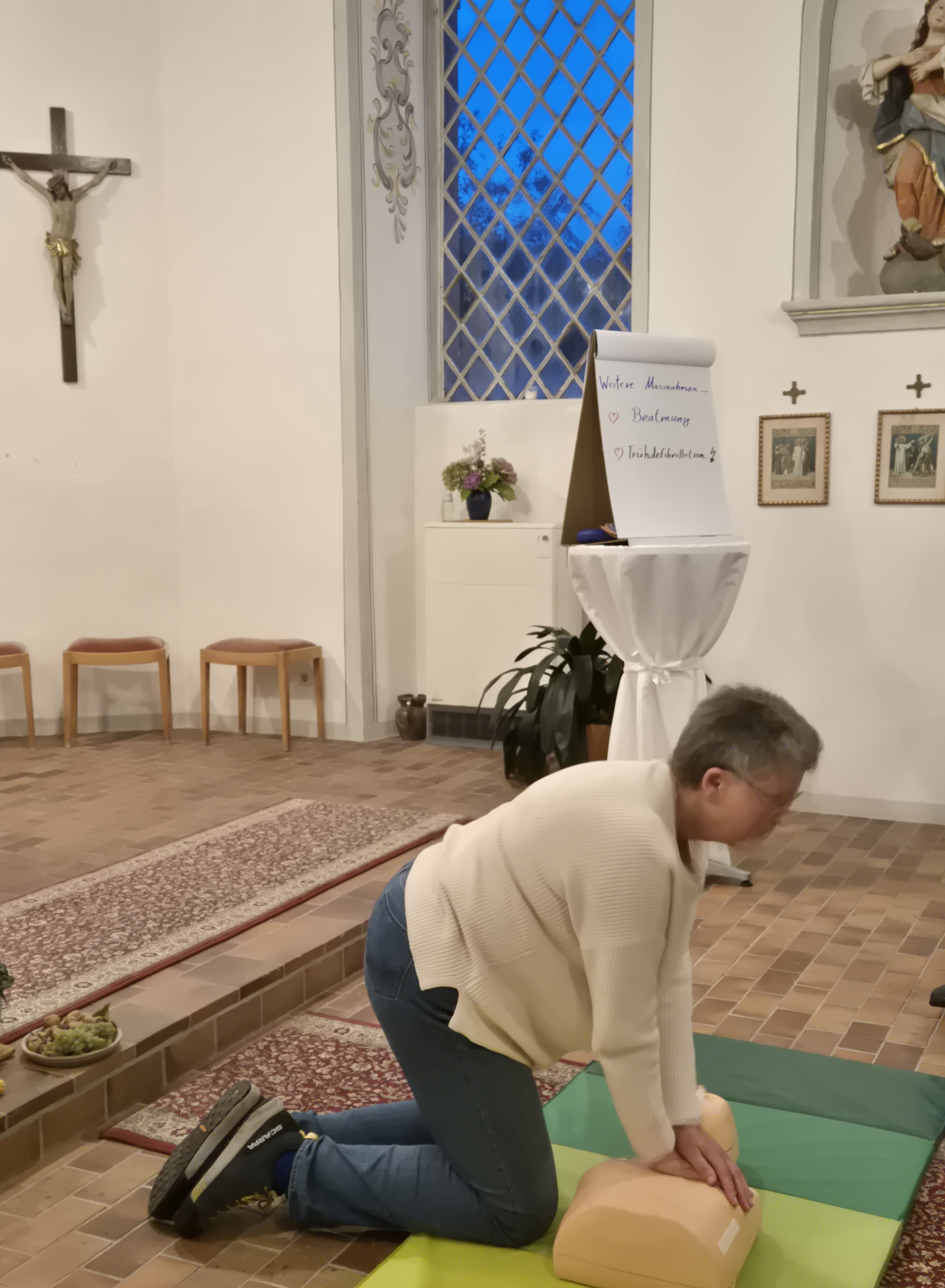 Aus Anlass der Woche der Wiederbelebung, die jedes Jahr in diesem Zeitraum stattfindet, nahmen unter dem Motto “14 Nothelfer + DU !” sieben Teilnehmerinnen und Teilnehmer an einer kurzen Ausbildung zur Erkennung und Behandlung eines Kreislaufstillstandes teil.
